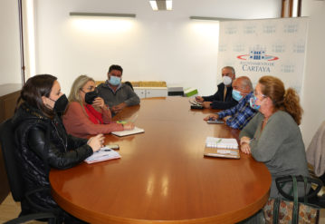 La alcaldesa, Pepa González Bayo, y la concejala de Festejos, Saray Oria, se reúnen con la presidenta de la Hermandad,...