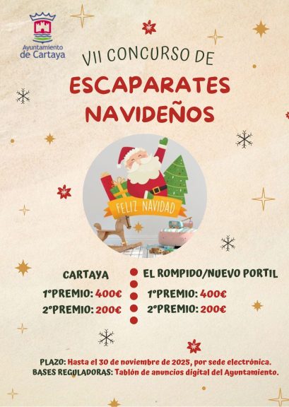 El Ayuntamiento de Cartaya, a través de la Concejalía de Desarrollo Local y el Área de Comercio, ha anunciado la séptima edición de su tradicional Concurso de Escaparates Navideños, un evento que busca consolidarse como un referente en la Navidad local e impulsar la compra en los comercios del municipio.