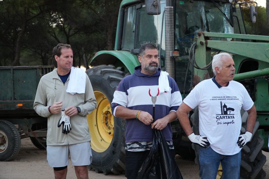 El Ayuntamiento de Cartaya llevó a cabo una nueva batida de limpieza en la Pradera de San Isidro, iniciativa que se desarrolla por tercer año consecutivo. La jornada contó con la participación del alcalde Manuel Barroso, los concejales de Medio Ambiente y Seguridad Ciudadana, y equipos de Cruz Roja, Protección Civil, la Sociedad de Cazadores, el CT Cartaya “Vallesalado”, Urbaser y un grupo de voluntarios, destacando el compromiso cívico y la colaboración de todas las entidades con el entorno natural del municipio.