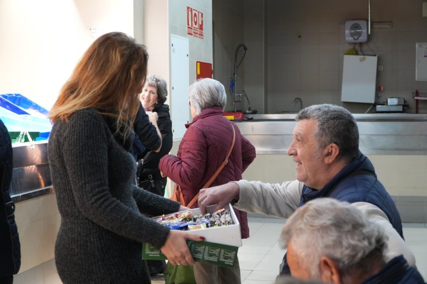 Se celebró una chocolatada gratuita acompañada de dulces, invitando a la ciudadanía a disfrutar del ambiente tradicional y cercano del mercado, contando con la participación de la primera teniente de alcalde, Eva Moya.
