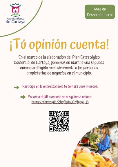 Encuesta Fundamental para el Plan Estratégico Comercial El Área de Desarrollo Local lanzó una encuesta dirigida a propietarios de negocios para elaborar el crucial Plan Estratégico Comercial de Cartaya, buscando propuestas y un diagnóstico preciso del sector local.