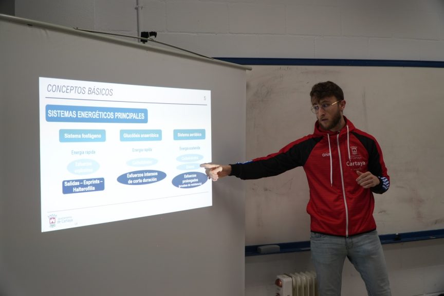 Nutrición Deportiva: La actividad comenzó con una charla magistral del nutricionista Juan Gabriel Lozano Martínez, enfocada en hábitos de vida saludables, contando con el respaldo de la concejala de Deportes, Eva Moya.
