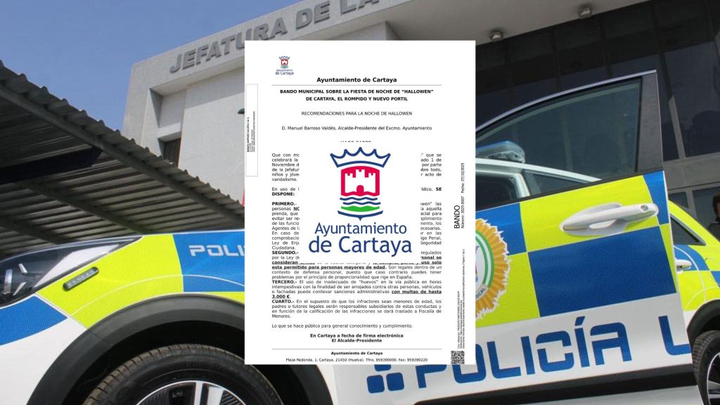 El Ayuntamiento de Cartaya, a través de su alcalde, D. Manuel Barroso Valdés, ha emitido un Bando Municipal que establece un estricto régimen de recomendaciones y sanciones ante la celebración de la Noche de Halloween, que se desarrollará la madrugada del 31 de octubre al 1 de noviembre.