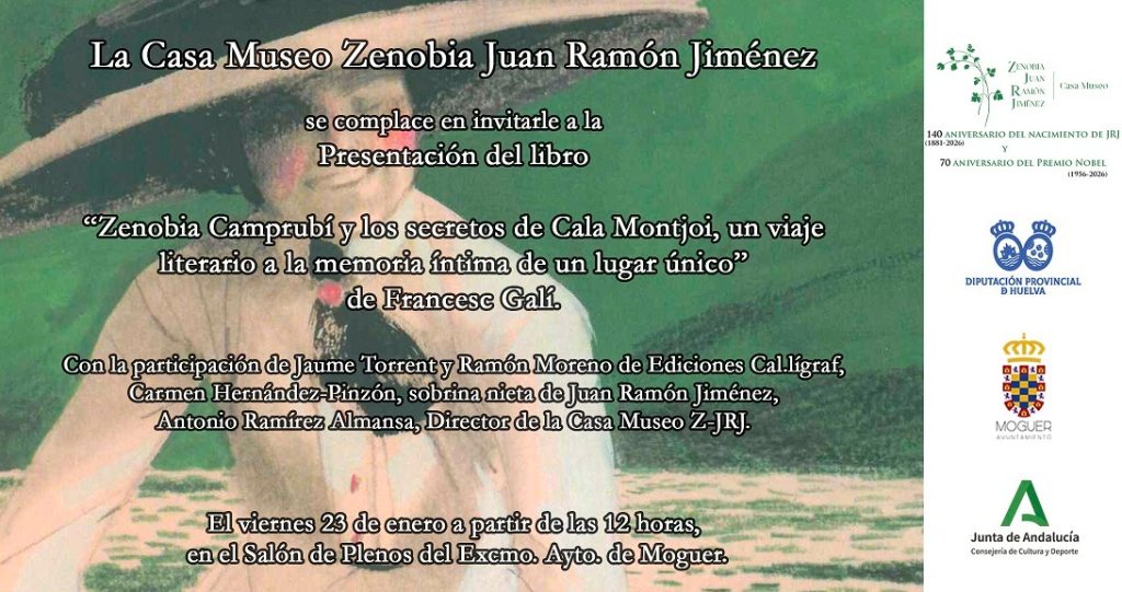 La jornada cultural arranca este mismo viernes a las 12:00 horas en el Salón de Plenos del Ayuntamiento de Moguer. La localidad juanramoniana vive un día histórico con la presentación del libro ‘Zenobia Camprubí y los secretos de Cala Montjoi’.