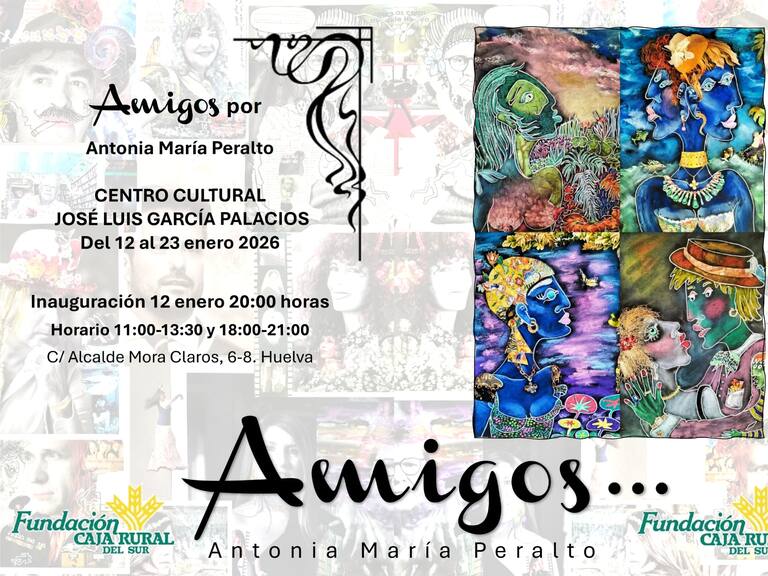 En la capital, el reloj corre para los amantes de la pintura. Este viernes es el último día para visitar la aclamada exposición ‘Amigos’ de la artista onubense Antonia María Peralto en el Centro Cultural José Luis García Palacios (Fundación Caja Rural del Sur).