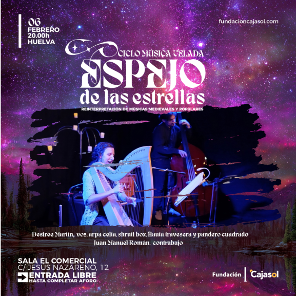 El ciclo Música Velada de la Fundación Cajasol nos propone una experiencia sonora única. El dúo formado por Desirée Martín (voz, arpa celta, flauta y percusión) y Juan Manuel Román (contrabajo) reinterpretarán músicas medievales y populares en un ambiente íntimo y mágico.