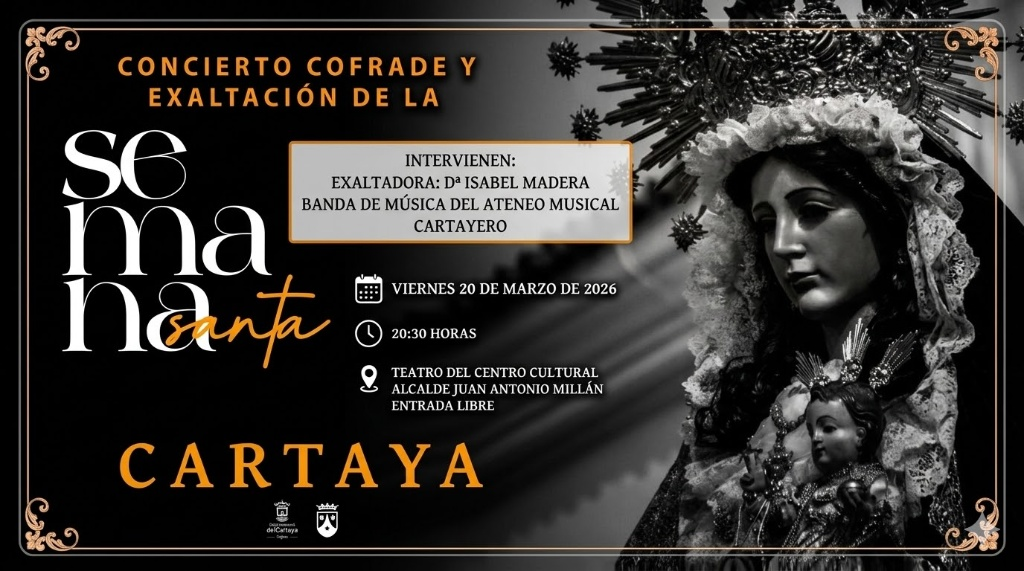 La gran cita de este viernes 20 de marzo tendrá lugar a las 20:30 horas en el Teatro del Centro Cultural de Cartaya, donde la solemnidad y la música se darán la mano en un acto inolvidable. El evento contará con la sentida oratoria de Isabel Madera y la interpretación magistral de la Banda de Música del Ateneo Musical Cartayero, quienes pondrán la banda sonora a este inicio de la Pasión.