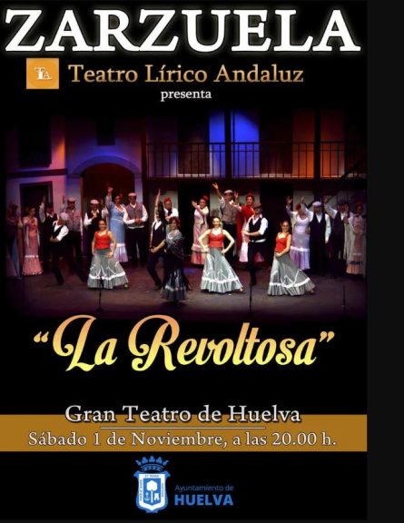 Gran Teatro de Huelva: Llega la zarzuela a Huelva capital. «La Revoltosa» es una de las zarzuelas más famosas y representativas del género chico español. Es un sainete lírico en un solo acto, con música de Ruperto Chapí y libreto de José López Silva y Carlos Fernández Shaw, estrenado en Madrid en 1897.