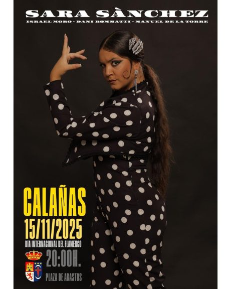- Calañas se suma al calendario con una «noche llena de duende» el sábado 15 de noviembre (20:00h) en la Plaza de Abastos, protagonizada por la actuación de Sara Sánchez, acompañada por talentos como Israel Moro y Dani Romatti. El consistorio también aprovechó para felicitar al pianista Andrés Barrios por su nominación a los Grammy Latinos.