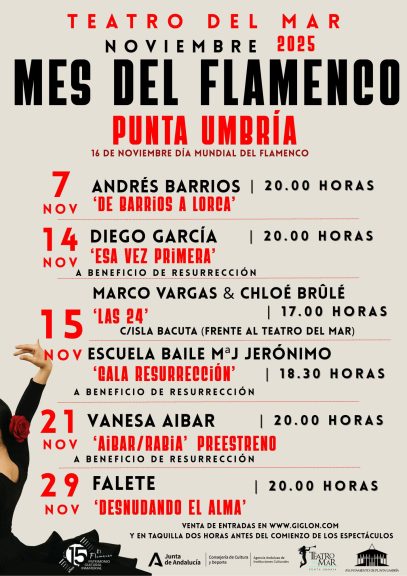 La ciudad fronteriza de Ayamonte se une a la celebración con el ciclo «Flamenco Ayamonte», un proyecto que busca consolidar la ciudad como «un punto de encuentro para los amantes y defensores de este arte universal».