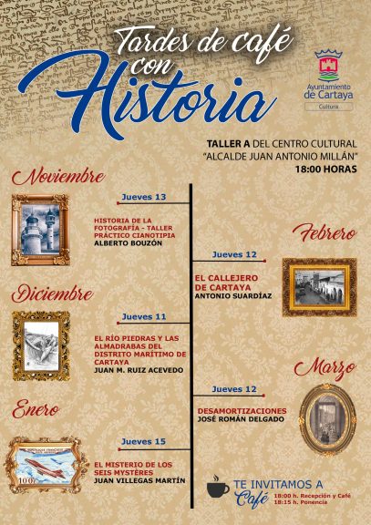 “Tardes de café con historia” es una invitación a la ciudadanía a compartir una tarde diferente, combinando divulgación, diálogo y convivencia, para redescubrir el pasado de una manera estimulante. La entrada es libre hasta completar aforo.